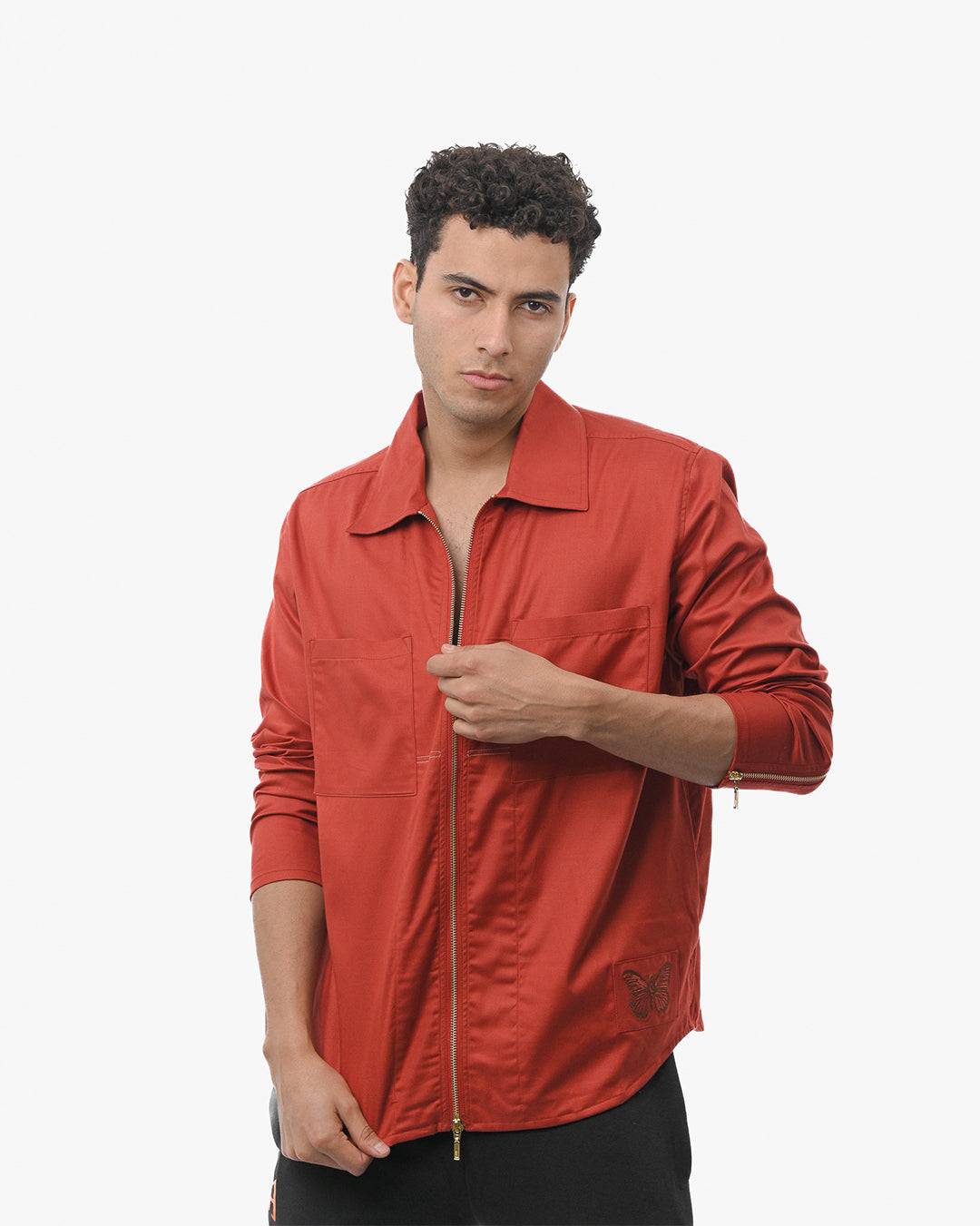 Bold yet refined, this deep red overshirt is designed to make a confident statement while maintaining a clean, modern silhouette. The structured collar and full-length metal zip fastening give it a sharp, tailored edge, making it perfect for elevated casual styling.