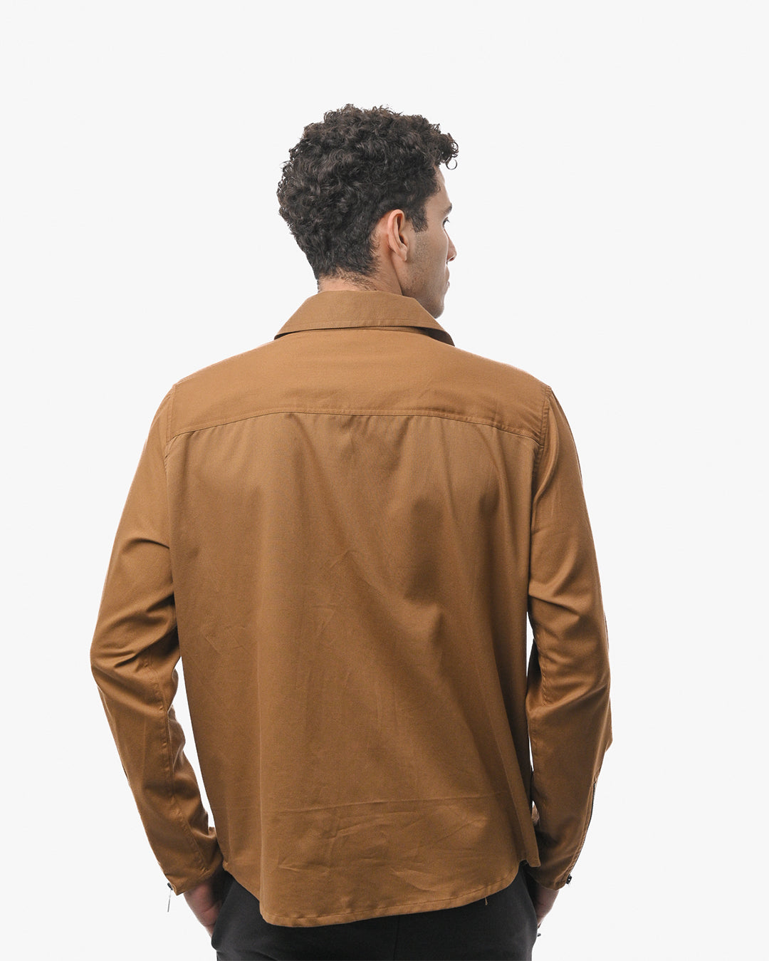 Bold yet refined, this camel brown overshirt blends utilitarian design with a distinctive edge. Crafted in a smooth mid-weight fabric, it offers structure, comfort, and effortless versatility perfect for layering across seasons.
