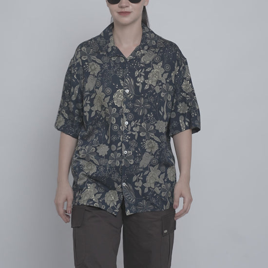 Floral Printed Short Sleeve Shirt Navy Blue